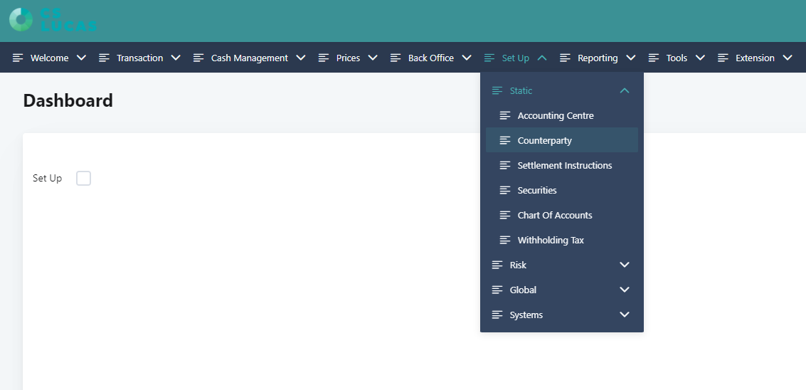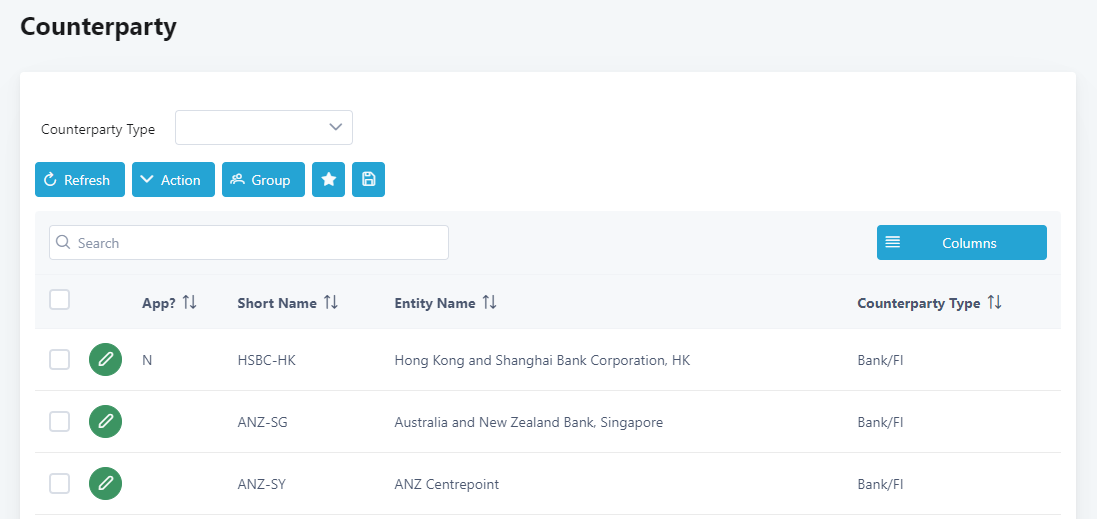 2. It will be directed to the Counterparty screen where all the counterparties set up previously are shown.