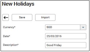 3. Choose the currency of the holiday to set up. In this example, SGD will be chosen.