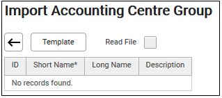 4. Click Import. The Import Accounting Centre Group screen displays.