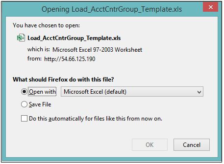 5. Click Template to download CS Lucas template for importing accounting centre group.