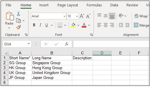 7. Fill out the sheet, field with asterisk are mandatory. For more details on each of the field, see Create Accounting Centre Group and Assign Members.