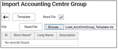 9. Go back to Import Accounting Centre Group screen, tick on Read File checkbox.