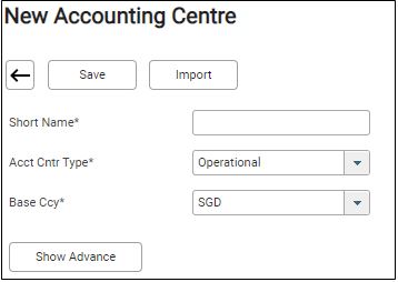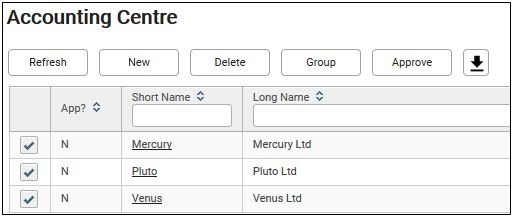 1. From the main menu, select Set Up > Static > Accounting Centre.