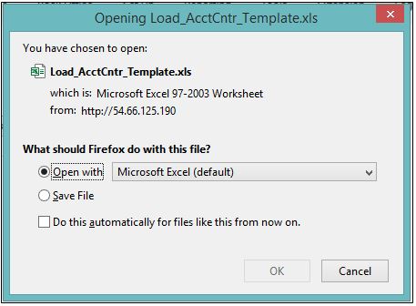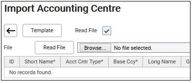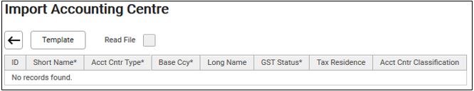 4. Click Template to download CS Lucas template for importing accounting centre.