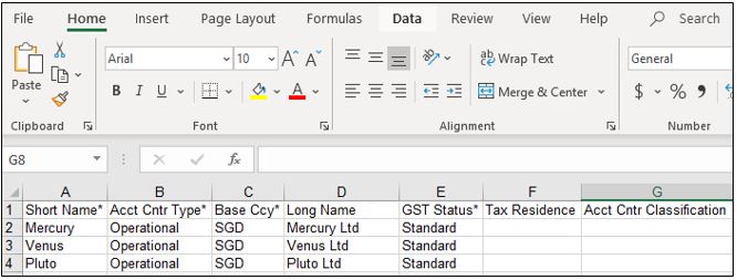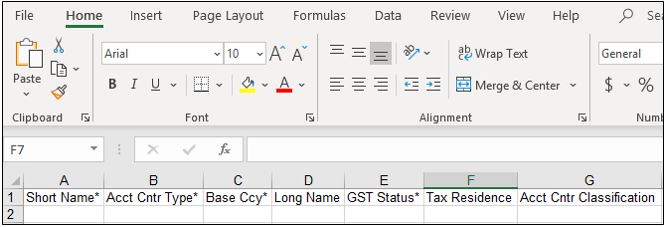6. Fill out the Excel file. Fields with asterisks (*) are mandatory.
