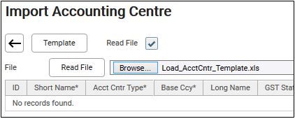 8. Go back to the Import Accounting Centre screen, tick on Read File checkbox.