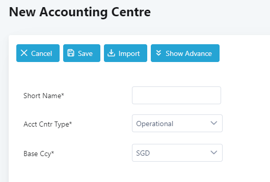 1. From the main menu, select Set Up > Static > Accounting Centre.