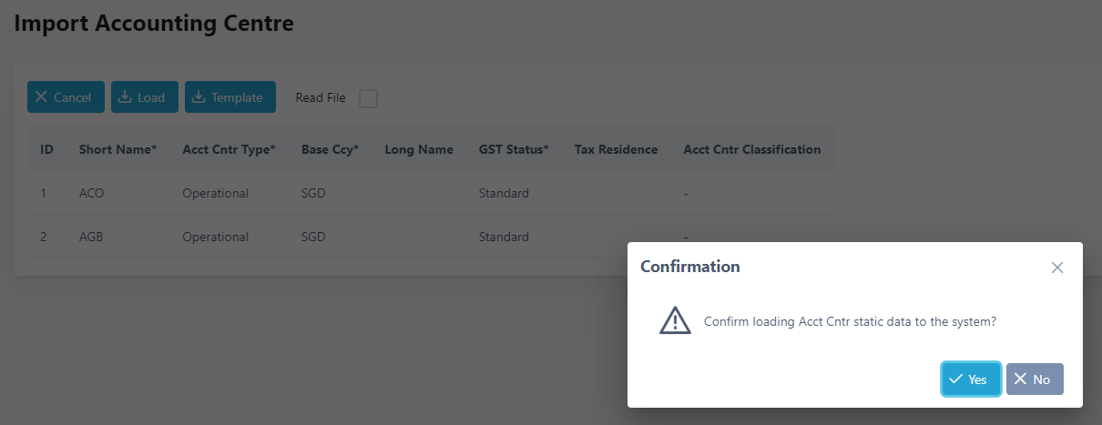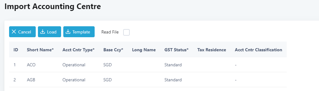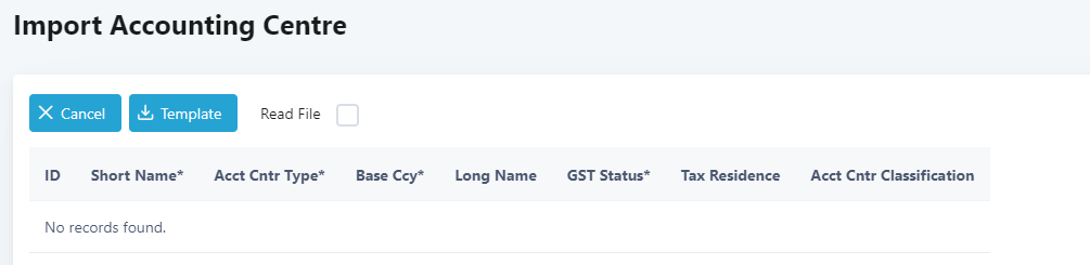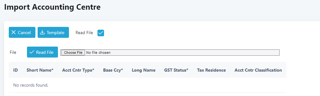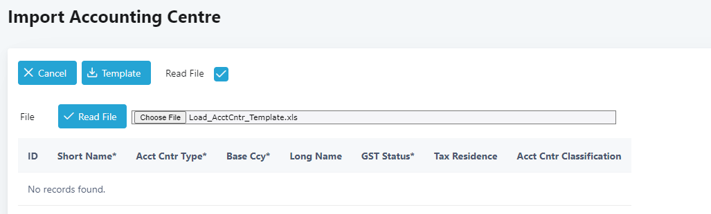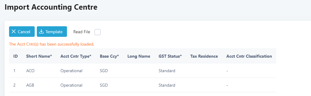 8. Go back to the Import Accounting Centre screen, tick on Read File checkbox.