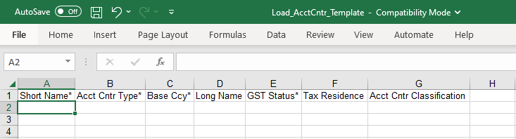 6. Fill out the Excel file. Fields with asterisks (*) are mandatory.