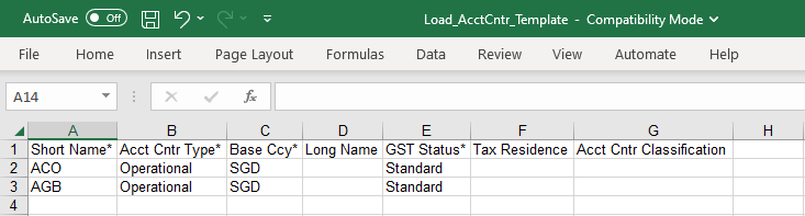 4. Click TemplateĀ to download CS Lucas template for importing accounting centre.