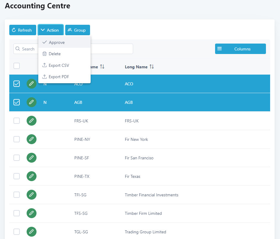 Accounting centres are internal legal entities created in the system for booking transactions.