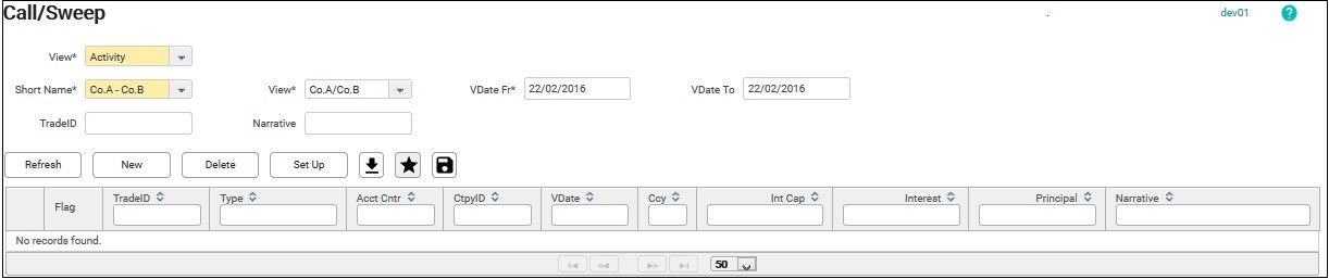 6. Fill out the sheet, fields with asterisks are mandatory. For more details on each of the field, see Call/Sweep Set Up.