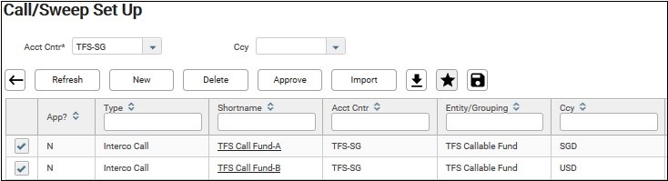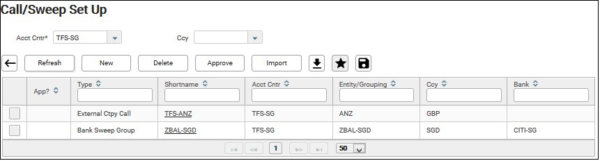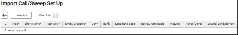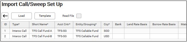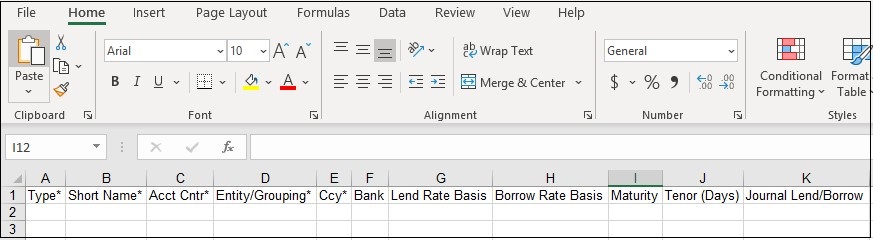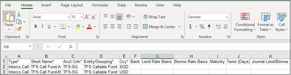 Note: To import bank sweep group, only Type and Entity/Grouping is required. Short Name, Acct Cntr, Ccy and Bank will be set accordingly by the system based on the value filled in Entity/Grouping field.