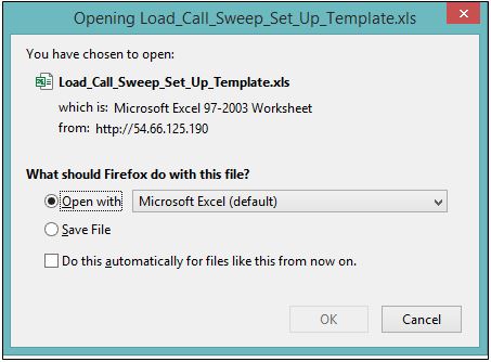4. Click Template to download CS Lucas template for importing call/sweep set up.