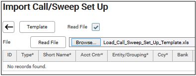 3. Click Import. The Import Call/Sweep Set Up screen displays.