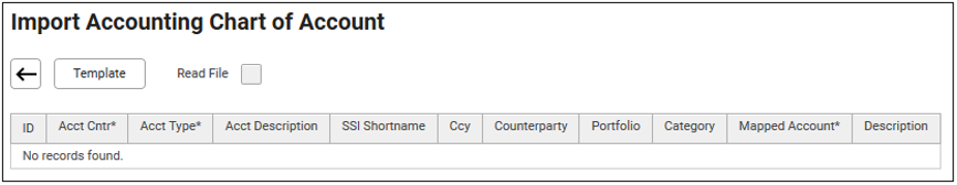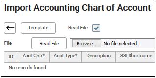 2. In the Accounting Chart of Account screen, click Import. The screen below appears.