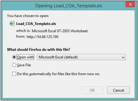 7. Click Choose File. Look for the saved Load_COA_Template.xls file.