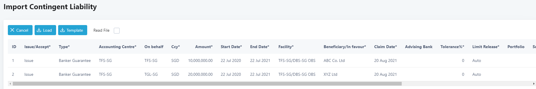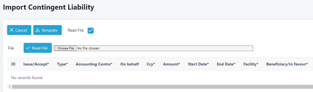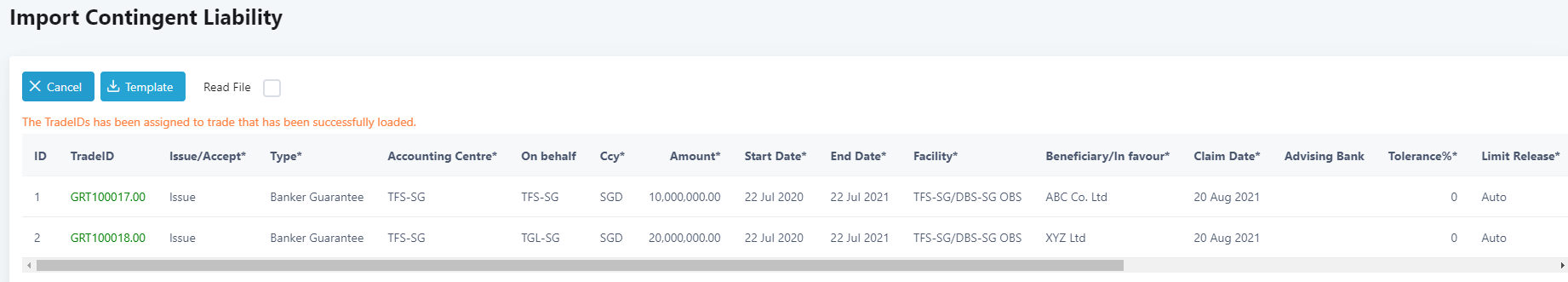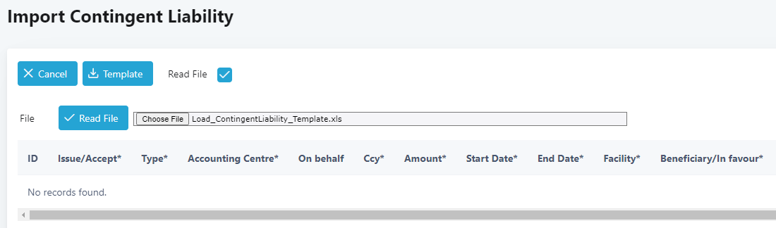 8. Go back to the Import Contingent Liability screen, tick on Read File checkbox.