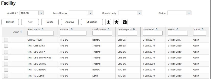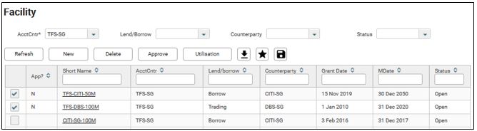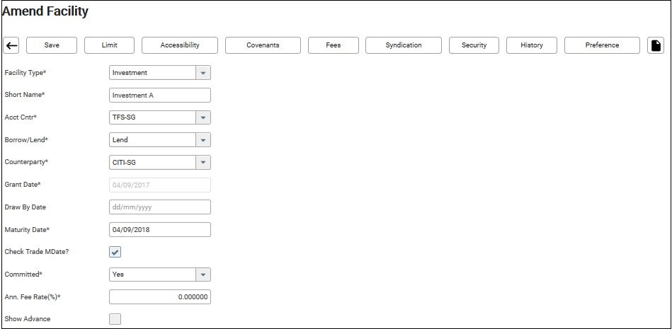 3. Click any one of the facility short name. In this example, it will be Investment A.
