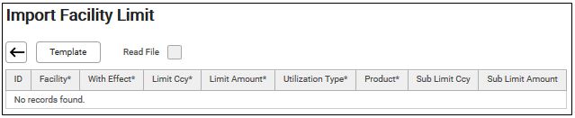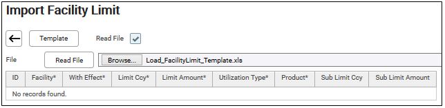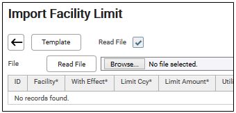 6. Click Template to download the CS Lucas template for importing facility limit.