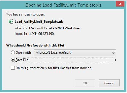 This allows import of facility limits as a bulk if you have many to create or during the initial set up of the system where you need to migrate existing data.