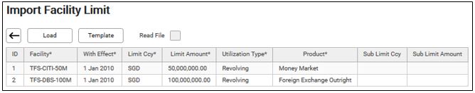 This document shows the detailed procedures on how to import facility limit in the system.
