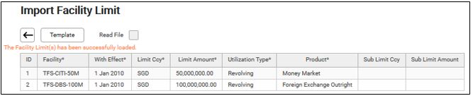 10. Go back to Import Facility Limit screen, tick on Read File.