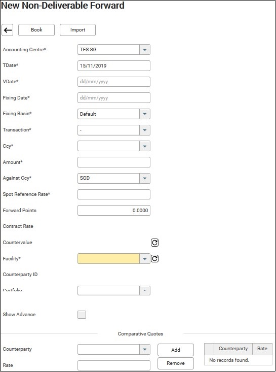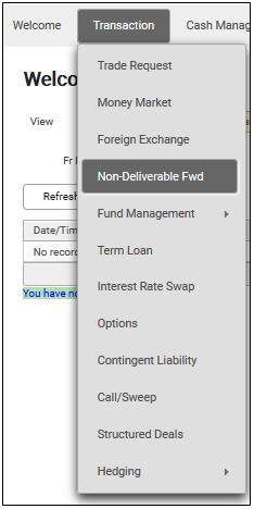1. From the home screen, select Transaction > Non-Deliverable Fwd.