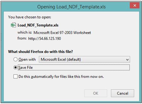 8. Click Choose File. Select the saved Load_NDF_Template.xls file.