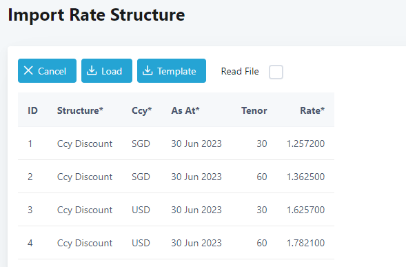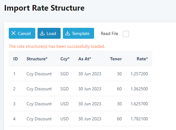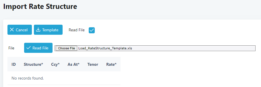 7. Go back to the system. From the Import Rate Structure screen, tick on the Read File checkbox.