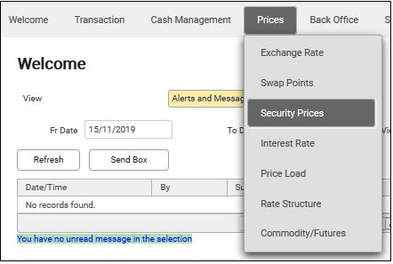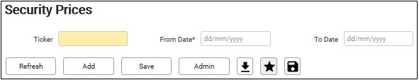 14. Filter Security Prices by date in the Security Prices screen to view all security prices available for the day. If you wish to view by date range, it must be for a selected ticker.