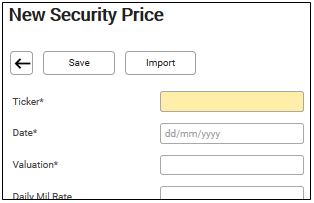 This allows import of security prices for different securities and dates into the system. This is a faster way for maintaining security prices in the system if the securities you have are many.