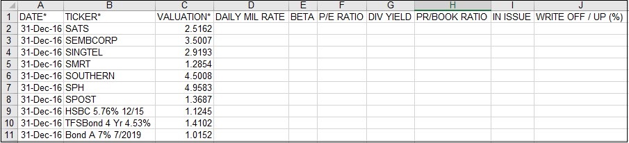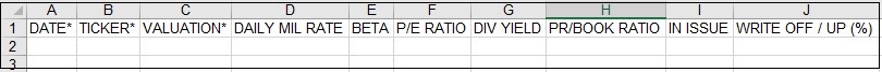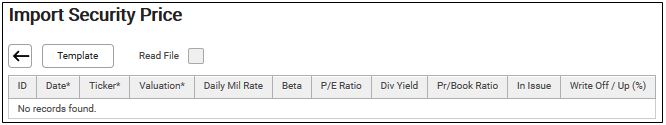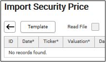 4. Click Template to download the CS Lucas template for importing Security Prices.