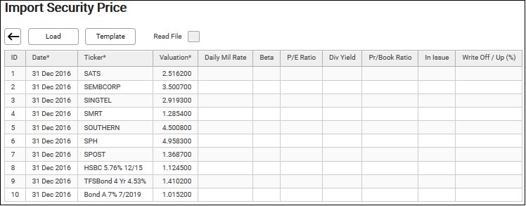 7. Go back to the Security Prices screen. Tick on the Read File box.