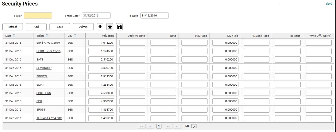 15. Click Refresh. The newly created Security Prices will be displayed.