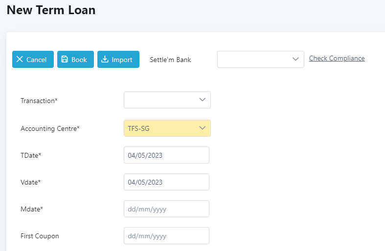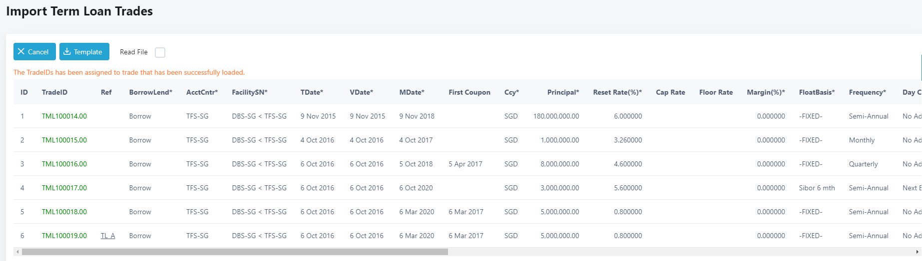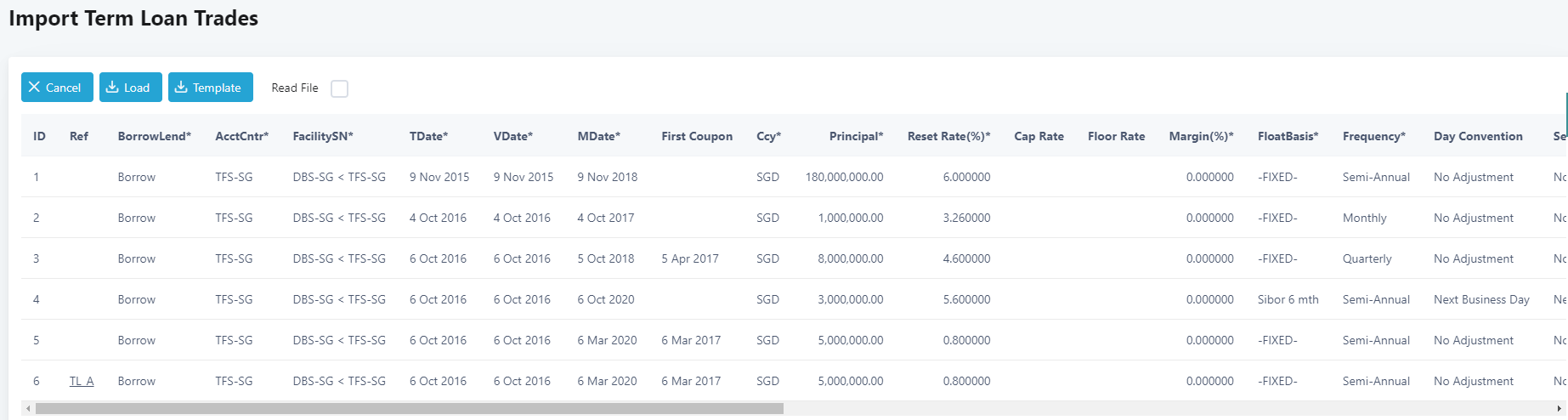 This is important because this saves time for the user when there are a lot of trades that need to be inputted into the system quickly. The import feature allows also users to import Term Loan transactions with irregular repayment schedules that agreed with counterparty.