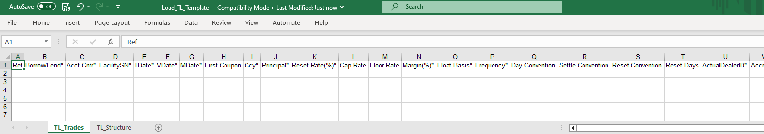 This is reference for the transaction being inputted. The Excel file has two tabs, “TL_Trades” and “TL_Structure”, the reference lets the system know that the term loan trade is associated with the term loan repayment schedule on the other tab. In this example, TL_A will be the reference code.