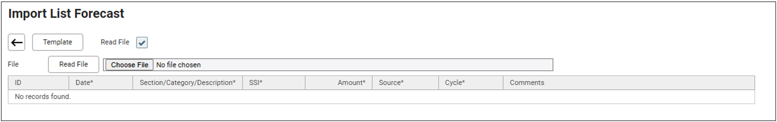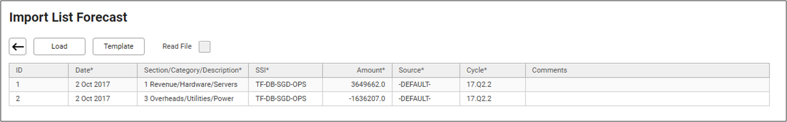 8. Go back to the Import Operational Forecast (List) screen. Tick on the Read File box.