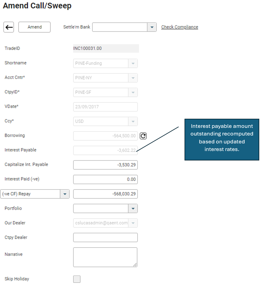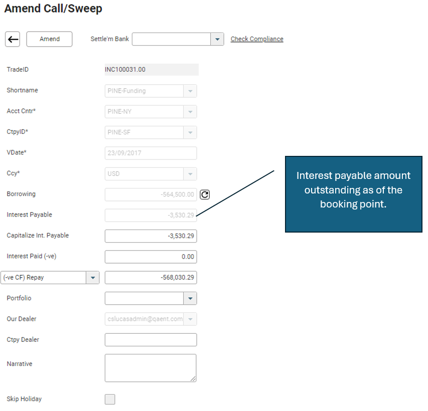 If you examine the transaction for value on 20 September 2017, you may notice that the outstanding interest payable amount is no longer 3,530.29 but has changed to 3,602.22.