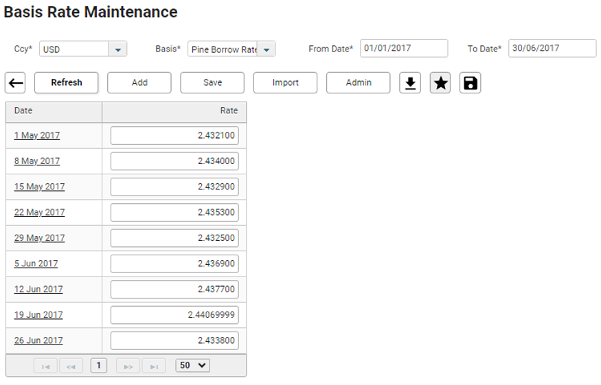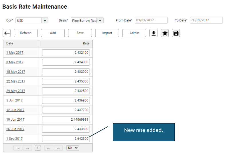 Dates | Base Rate (%) | Lend Margin | Borrow Margin | All in Borrow (%) |