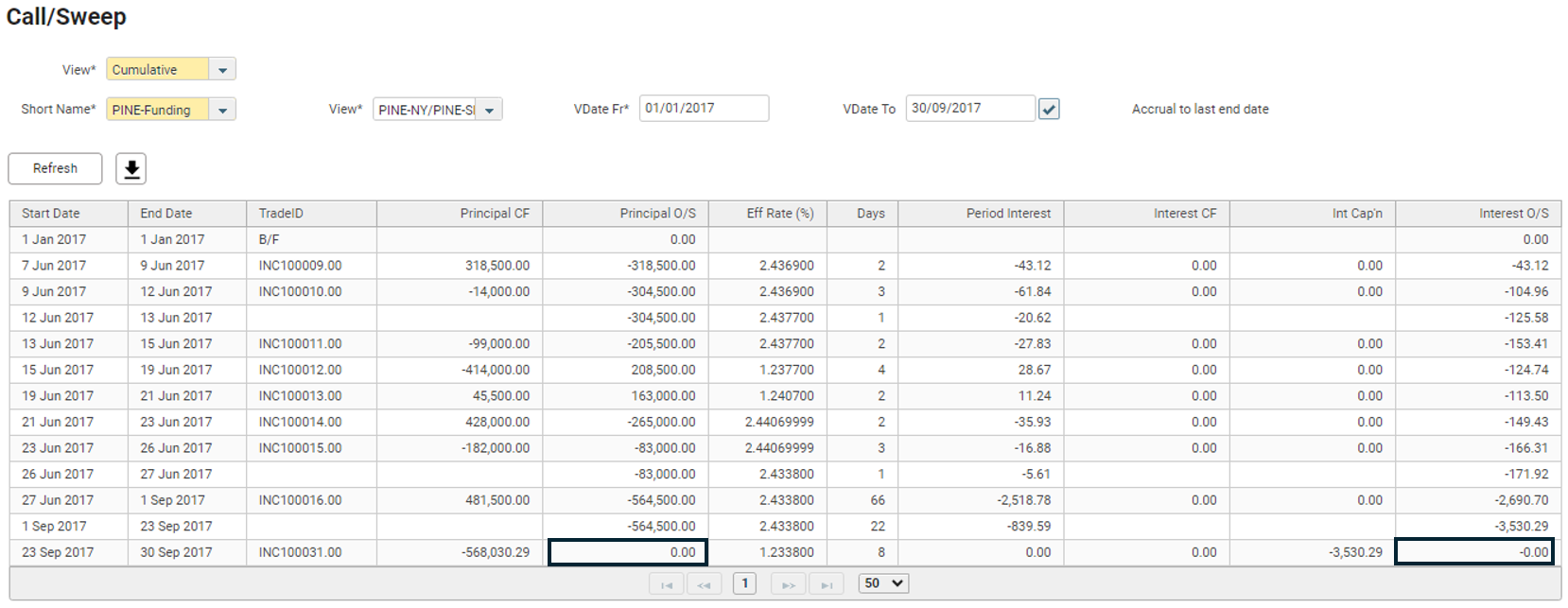The Interest O/S is no longer showing 0.00 in the Cumulative view.