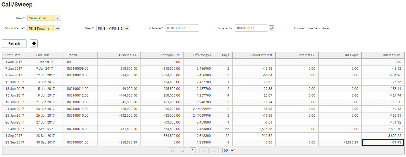Trade ID | Transaction | VDate | Amount | Capitalise Int. |