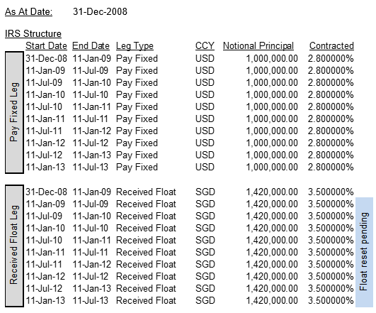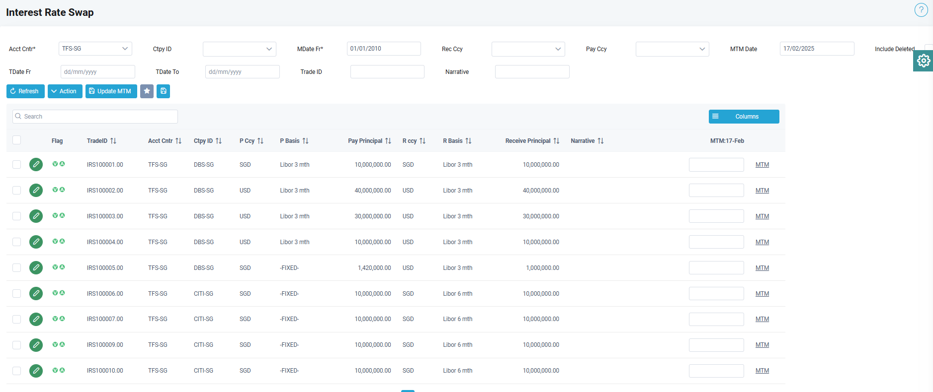 8. The system displays the MTM of the outstanding individual legs of the IRS and a total in the reporting currency.