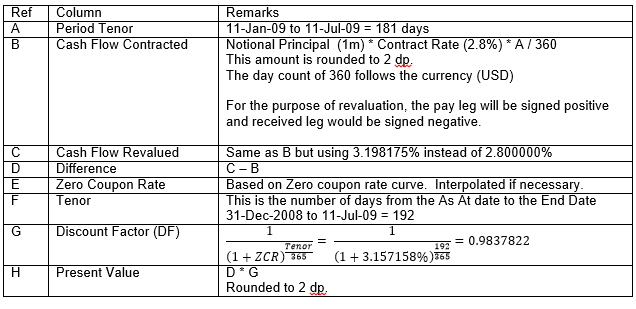 All the fixed leg cash flow will be revalued between the contracted rate and the implied forward rate.
