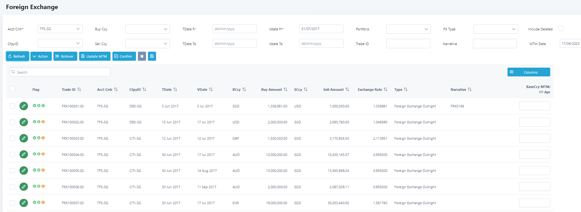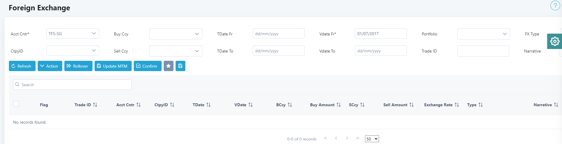 3. User may also set other filter criteria to queries if required (e.g., Ctpy ID, Buy Ccy, FX Type etc.). These filters are not mandatory.