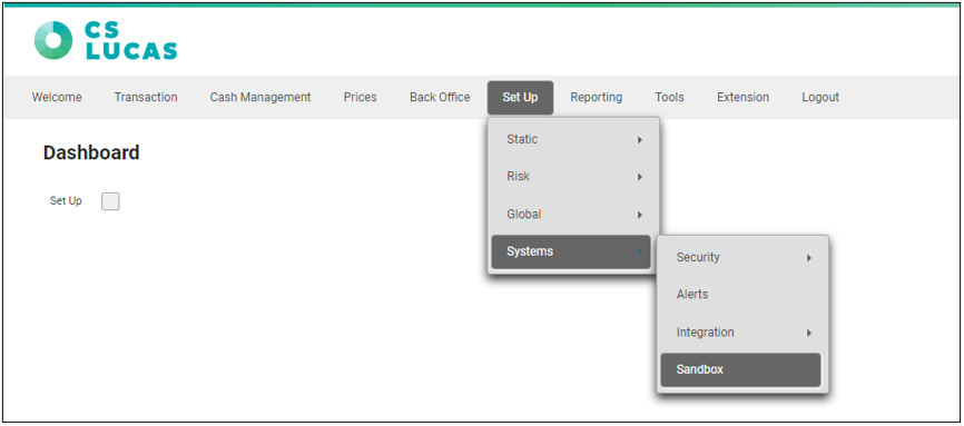 1. From the main menu, select Set Up > Systems > Sandbox.