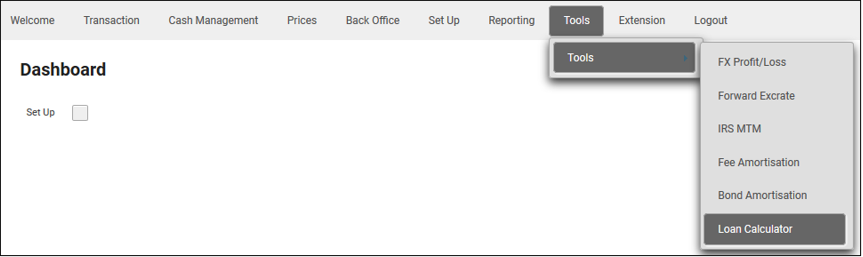 1. To navigate to Loan Calculator, select Tools > Tools > Loan Calculator from the main menu.