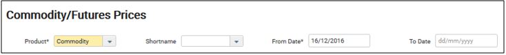 7. To view commodity or futures prices, select the Product and key in the From Date field.