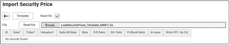 10. At the Import Security Prices screen, tick on Read File.
