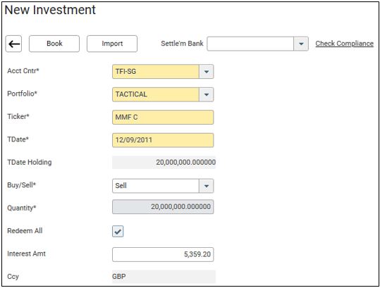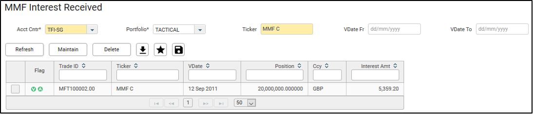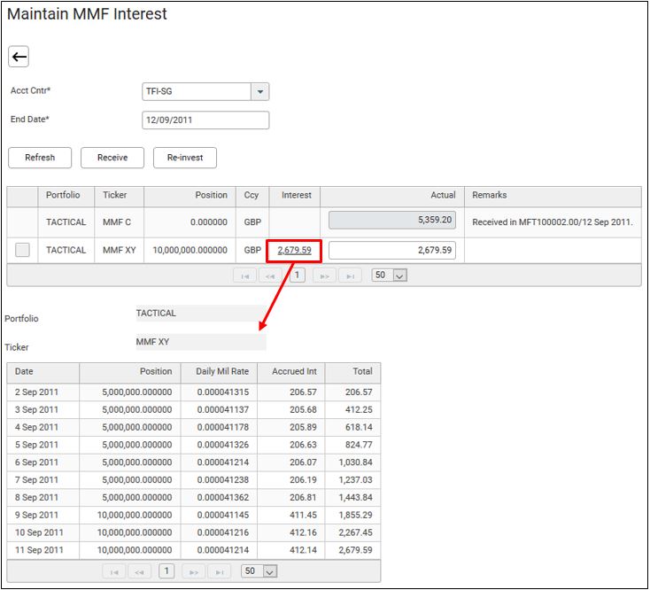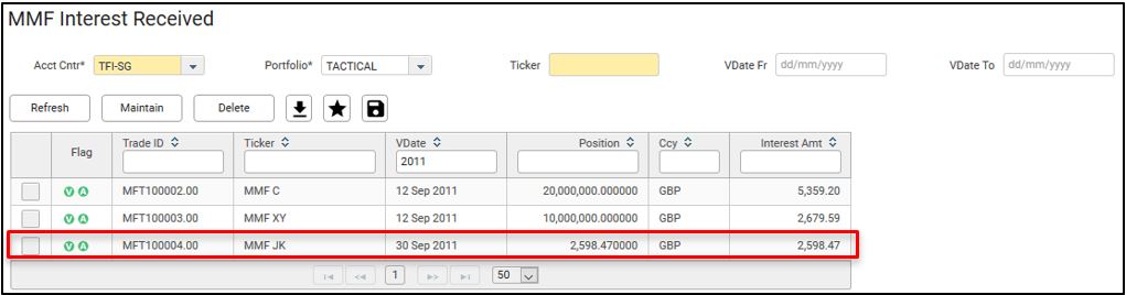 25. You will see the newly booked interest redemption trade in the MMF Interest Received screen.